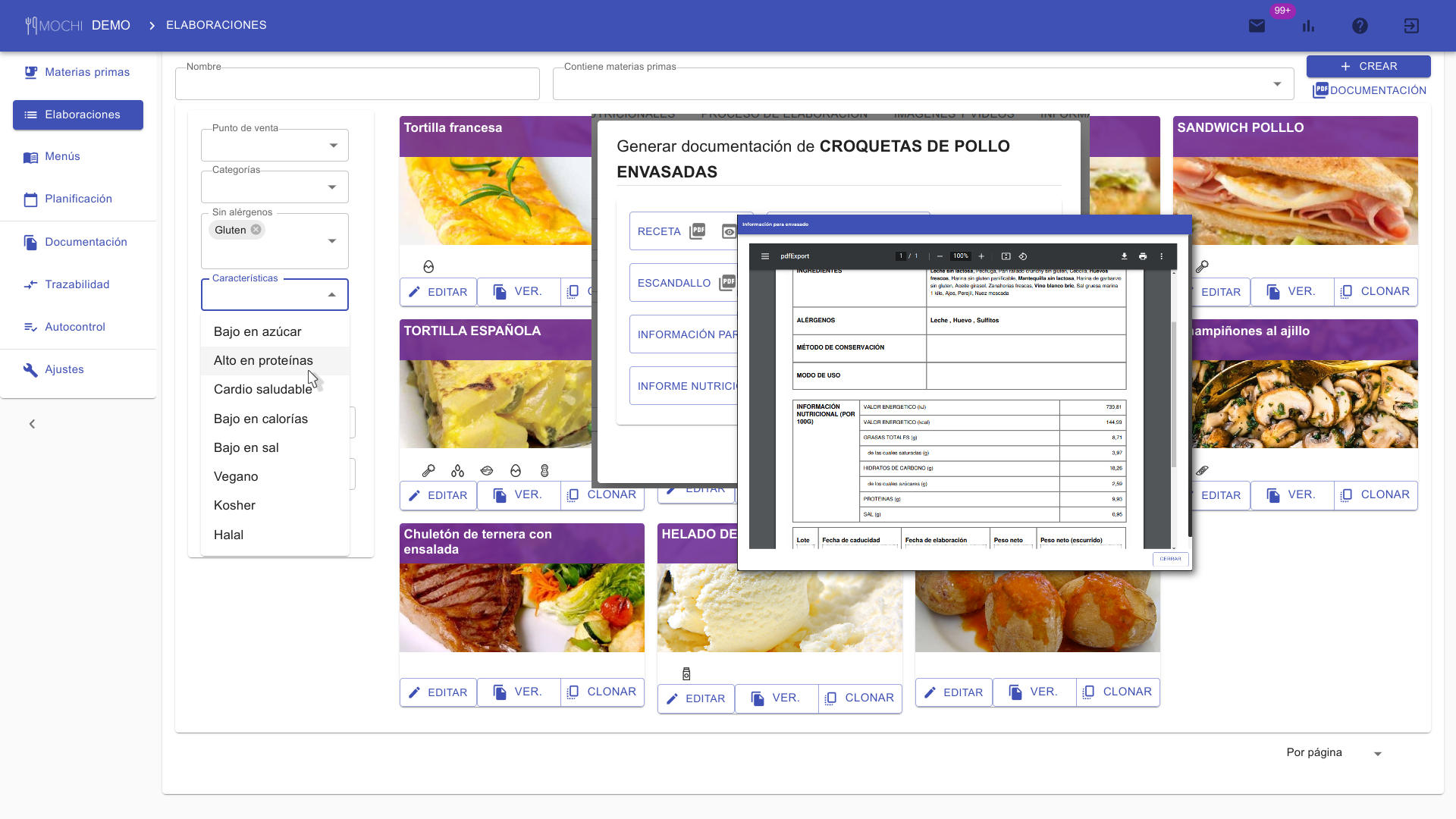 Informa a consumidor al instante, propagación de alérgenos y valores nutricionales automática desde la matería prima al menú, olvida tener que revisar elaboración a elaboración y menú a menú al modificar una materia prima.